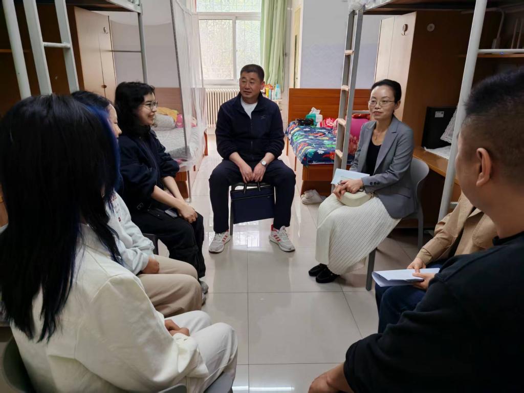 凡明锦查看了15#员工公寓心语社区的各项设施和环境布置。她强调要进一步完善建设细节,给员工提供一个更加温馨、舒适、便捷的生活环境。在辅导员值班室,凡明锦与联系民族员工亲切交流,询问在校学习生活近况,鼓励同学们积极参与社区建设,共同营造和谐、积极向上的社区氛围。