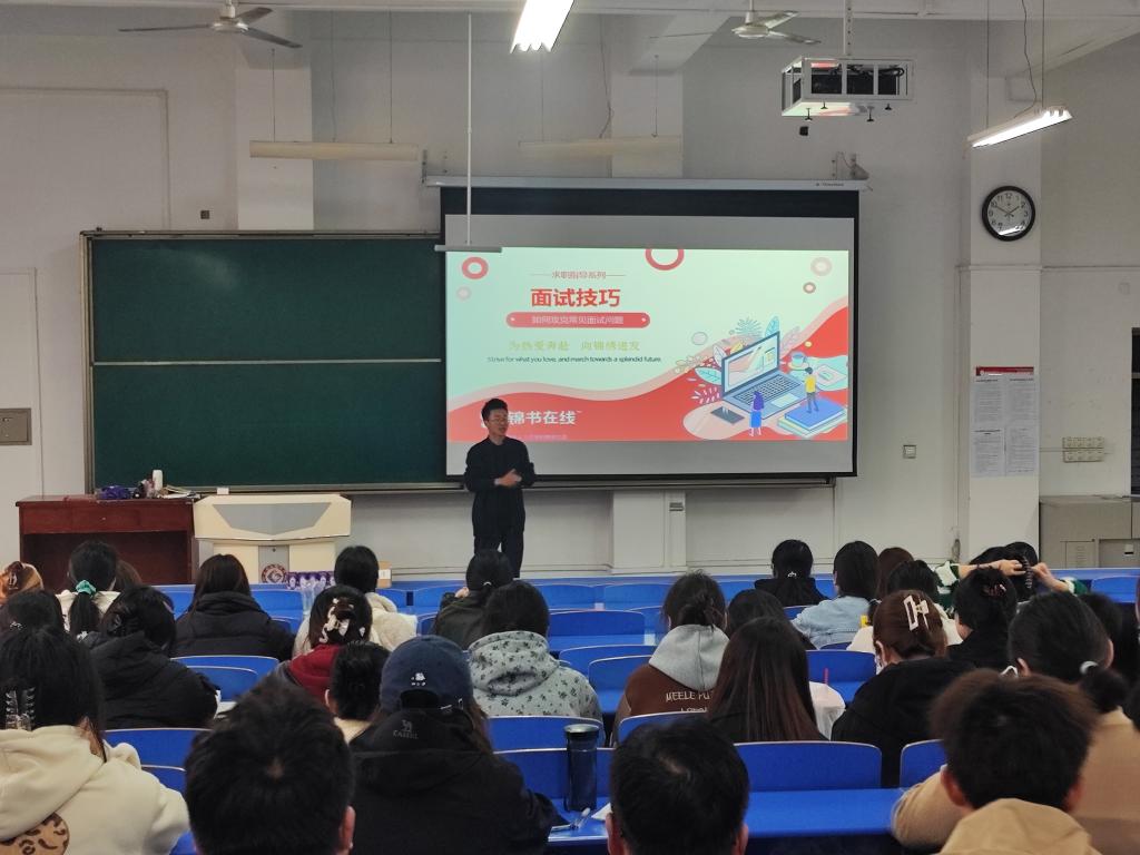 张卫东详细地向同学们讲解了面试前的准备工作,包括公司背景调研、职位分析、简历优化以及模拟面试等环节。他特别强调了自我介绍的技巧,鼓励同学们在有限的时间内,用最精炼的语言展现自己的优势与匹配度。