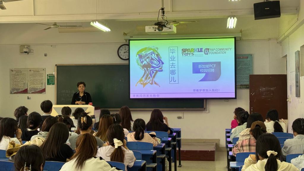 孙雯莉首先就新加坡的就业环境、生活条件、PCF的发展历程等做了阐述,并对其办学宗旨、专业要求、工作环境、教育模式、薪资标准等事宜做了详细说明。她还为师生介绍了新加坡的风土人情以及在PCF就业的宝文理往届毕业生的生活和工作情况。通过宣讲,现场师生对PCF有了更加深入的了解,对新加坡幼儿园工作有了具体全面的认知,也对海外工作充满了向往。