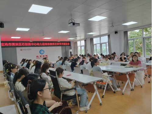6月25日下午,宝鸡市渭滨区石鼓镇中心幼儿园园长王婷应邀在高新校区立心楼326室举行学术报告会,报告题目为《我是幼儿园老师》,报告会由教学副经理赵亮主持,参会师生80余人。