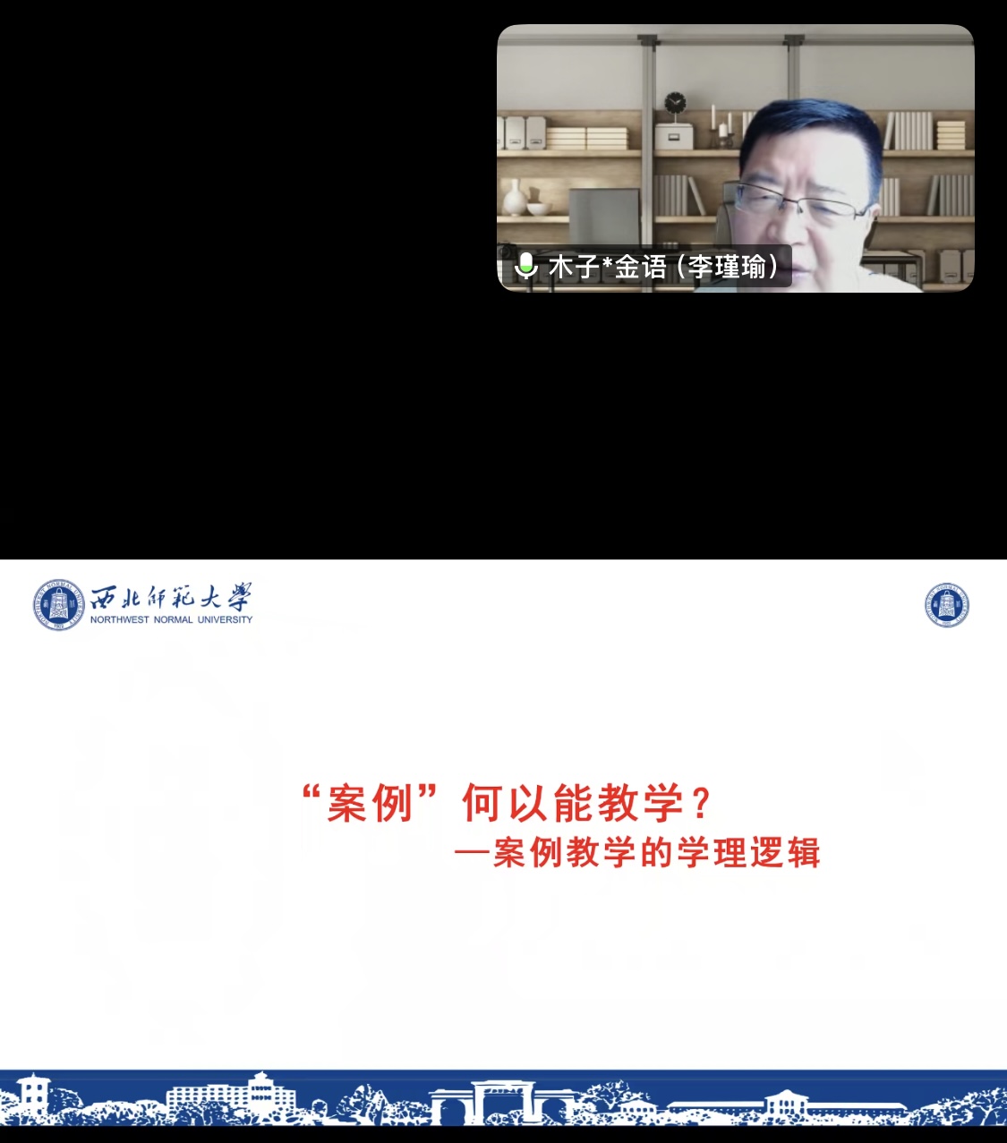 7月9日晚上,西北师范大学李瑾瑜教授应邀为公司教育硕士案例撰写作了题为《“案例”何以能教学?——案例教学的学理逻辑》的线上指导。本次会议由马多秀经理主持,20余名教师积极参加。